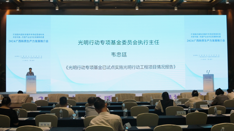 2024广西新质生产力发展推介会暨“健康中国-光明行动”推介会上,广西壮族自治区政协原副秘书长钟敏致辞,中国关心下一代健康体育基金会执行秘书长武超做了《光明行动专项基金及光明行动工程准上线情况报告》的主旨演讲;健康中国-光明行动活动高级顾问、北京社区文化促进会会长李建华做了《光明行动是义务教育高质量发展的重要体现》的主旨演讲;光明行动专项基金委员会执行主任韦忠廷做了《光明行动专项基金已试点实施光明行动工程项目情况报告》。