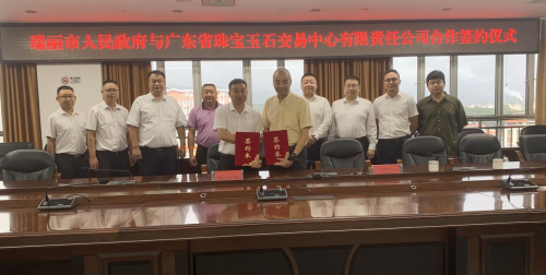 2025年10月1日,瑞丽市与广东省珠宝玉石交易中心、瑞丽市口岸发展投资有限公司、云南缅格拉贸易有限公司等多方,举行了合作签约仪式。广东省珠宝玉石交易中心总裁黎志伟、高级顾问吴赵峰、特种玉石品类交易事业部总经理于洪彬应邀代表广东省珠宝玉石交易中心出席本次活动。本次合作,标志着瑞丽翡翠玉石原料交易阳光化转型的正式启动,滇粤跨区域产业协作迈入实质性阶段,重构翡翠产业生态圈迈出关键一步,将有效激活百亿级翡翠存量市场,通过三年的精心培育,有望实现年交易规模的显著突破,将进一步带动加工、旅游等关联产业的增收,形成一定规模的税收体量。